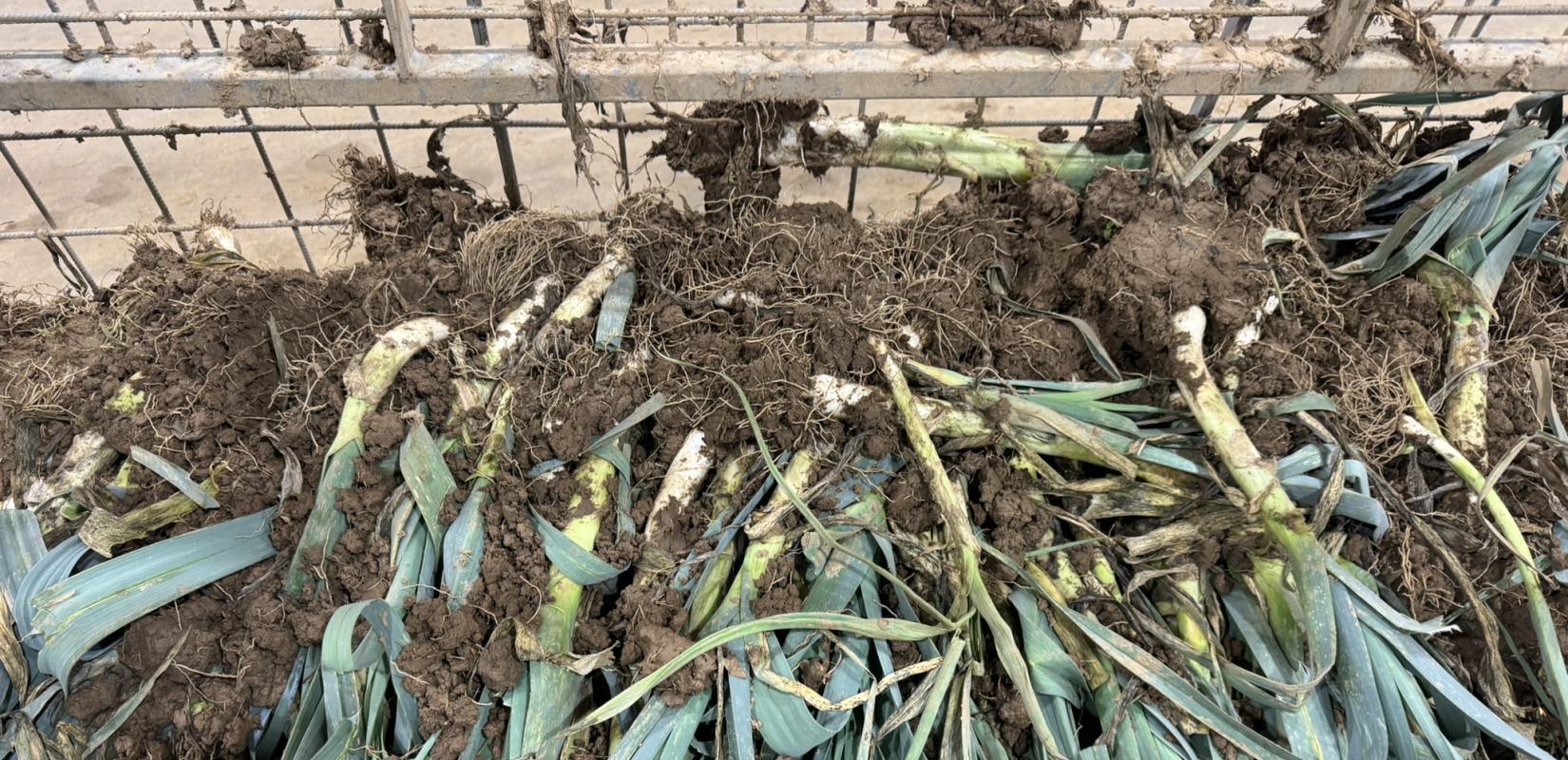 Nun denn, bei Tage wird hier auch die Zeit sinnvoll genutzt. Im Moment steht – wie immer im Januar - Lauch hoch im Kurs. Davon haben wir 10 Hektar angebaut. Wir ernten und putzen den am liebsten direkt auf dem Acker. Dann bleibt nämlich die meiste Erde und die Erntereste dort, wo sie auch hingehören. Allerdings war das in den letzten Wochen nicht wirklich ein Traumjob bei Matsch, Regen, viel Wind und oft sehr kalt. Entsprechend gesch-lauch-t ist man, nach so einem Tag. Wenn wir einige Tage auf Vorrat ernten müssen, weil zum Beispiel stärkerer Frost oder massenhaft Regen gemeldet wird, dann kommt unsere Lauchraupe zum Einsatz. Damit ernten wir den Lauch mit allem drum und dran in große Gitterboxen und er wird dann in der „warmen“ Halle geputzt. Mords Sauerei, aber eben alternativlos, wenn wir nicht auf Lauch verzichten möchten. (Warm meint an dieser Stelle: frostfrei, ohne Wind und Regen, gelegentlich mit balkanischen oder polnischen Klängen aus dem Lautsprecher.)